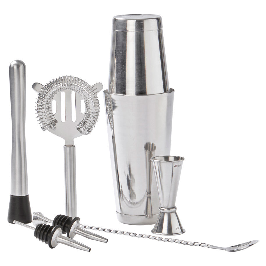 Pakkaus sisältää baarilusikan, baarisiivilän, survimen, Boston shakerin, 2 kpl kaadinta sekä viinamitan 2 cl / 4 cl.