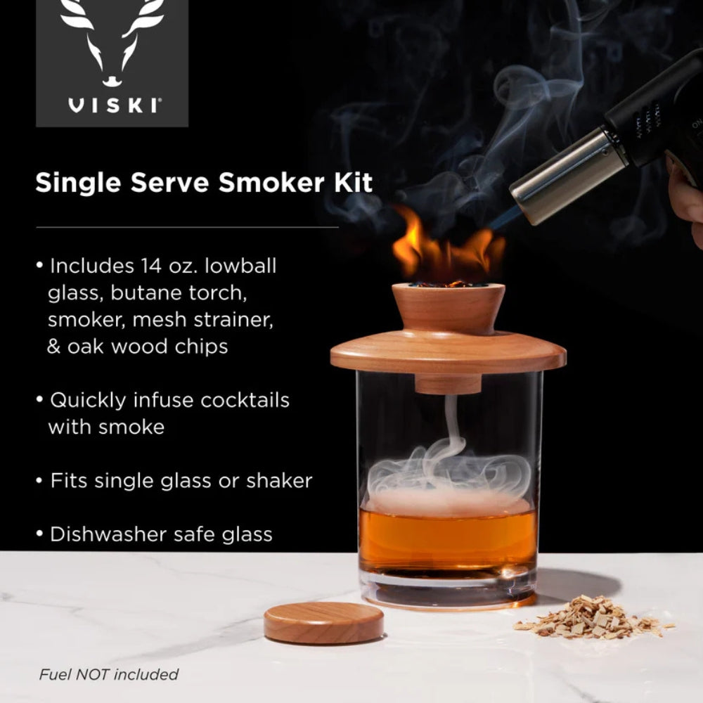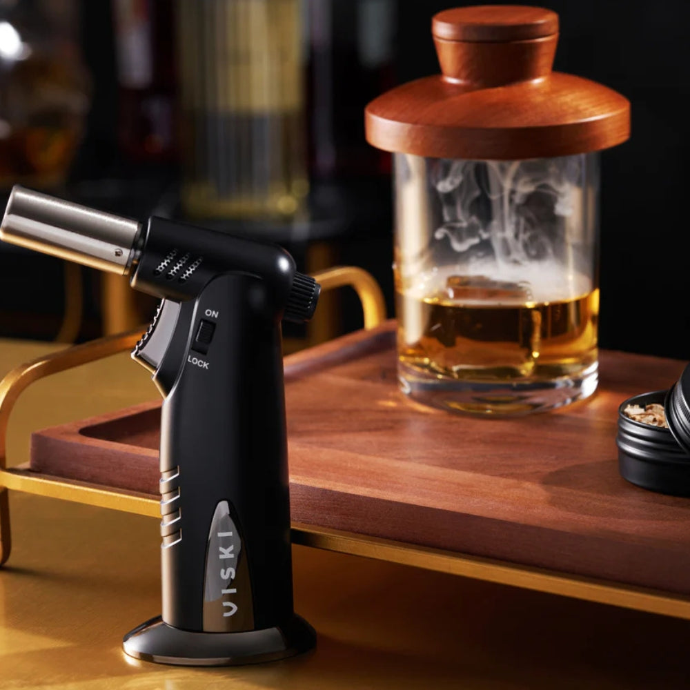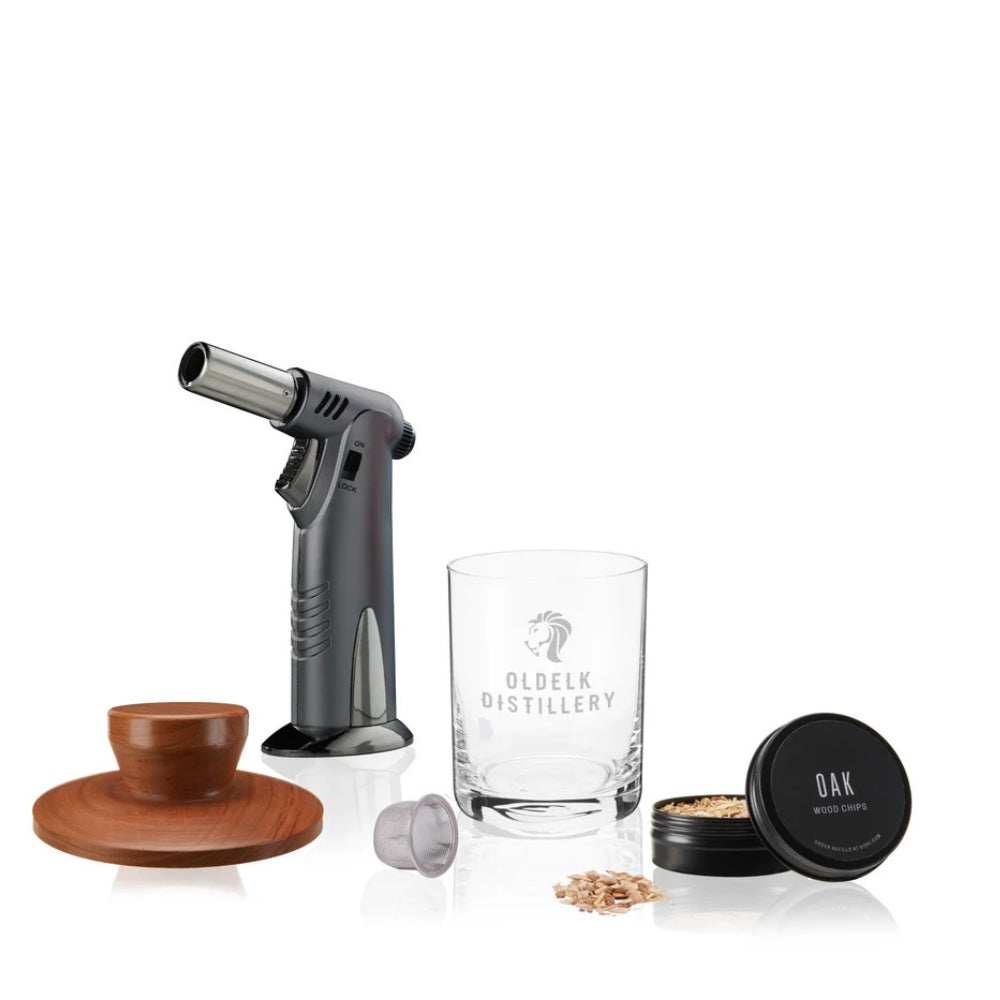 True Brandsin Viski Cocktail Kit savustimella nostat cocktailisi uudelle tasolle aidolla savuaromilla.Tämä kätevä setti tuo tammilastujen herkullisen, syvän savun maun ja tuoksun helposti osaksi suosikkijuomiasi. Voit vaivatta savustaa drinkkejä, koristeita ja erilaisia väkeviä juomia – lopputuloksena intensiivinen ja hienostunut makuelämys.