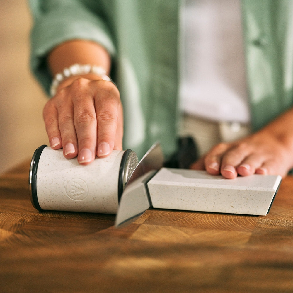 HORL®3 Cruise veitsenteroitin tekee keittiöveisten huoltamisesta ja ylläpidosta helppoa ja mukavaa! Tyylikäs hiekan väri sopii moneen keittiöön.