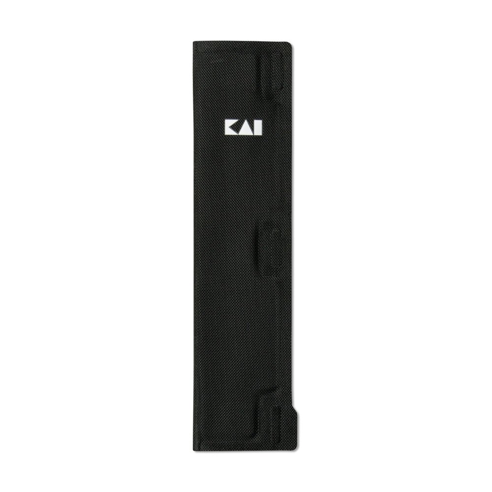 KAI-teräsuoja keskikokoisille veitsille. Kestävä teräsuoja, jonka sisäpuoli on pehmeää tekstiiliä, jolloin terä ei tylsy. Terän pituus saa olla enintään 24 cm.