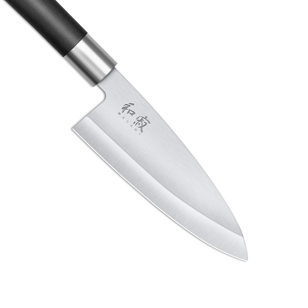 Japanilainen KAI Wasabi Black Deba -veitsi on painava, paksuteräinen ja yksipuoleinen veitsi.