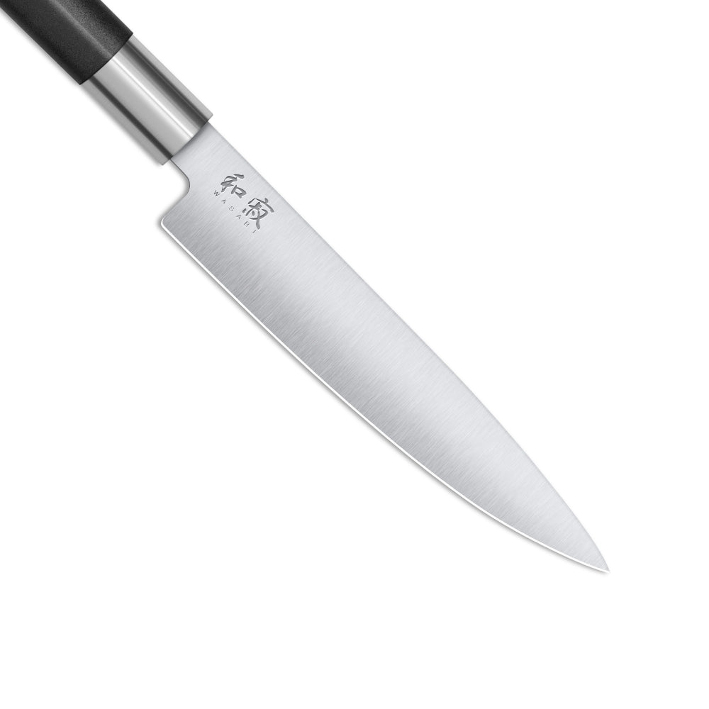 KAI Wasabi Black -keittiöveitsi on erinomainen veitsi vihannesten käsittelyyn. Hienot, hallitut keinuvat liikkeet sujuvat vaivattomasti, olipa kyse yrteistä, vihanneksista tai tarkasta kalan käsittelystä.