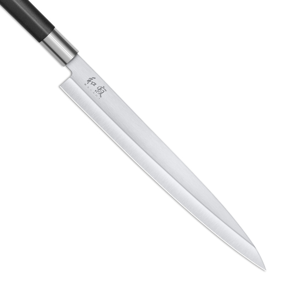 KAI Wasabi Black Yanagiba -veitsi on pitkä, kapea ja yksipuoleinen japanilainen veitsi, jonka tärkein tehtävä on raakojen kalafileiden ja sushin leikkaaminen pitkillä, puhtailla vedoilla. Saat tehtyä silkkisen sileitä viipaleita, eikä kalan kuidut repeä.