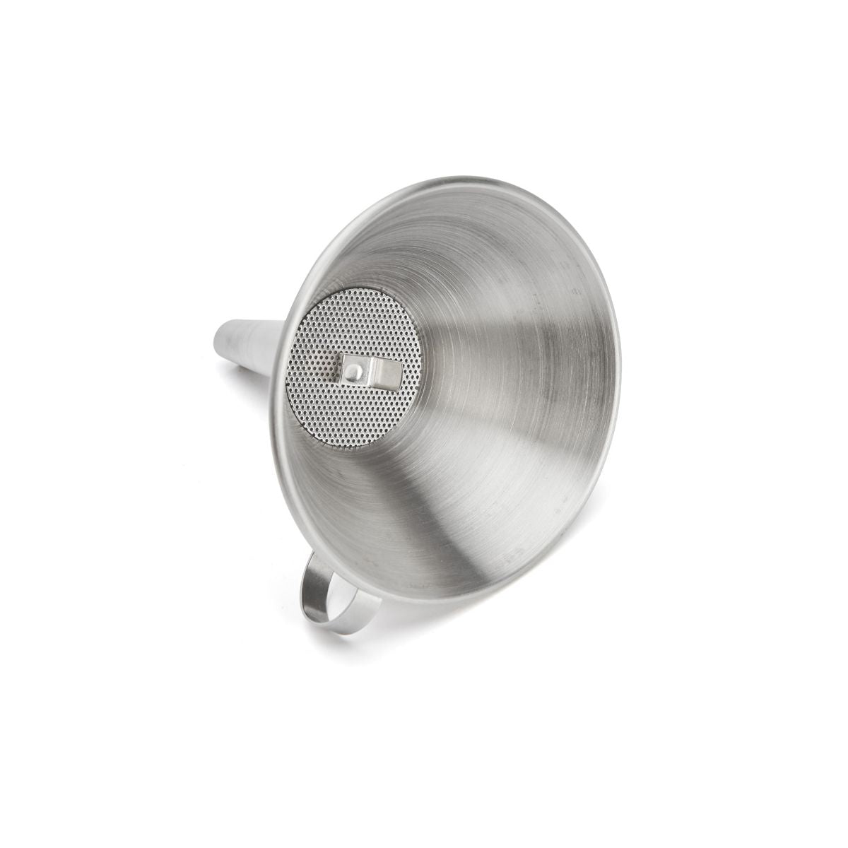 De Buyer suppilo siivilällä on laadukas ja kestävä. Suppilo helpottaa nesteen kaatamista kapeaan suuaukkoon.