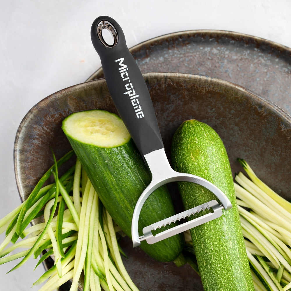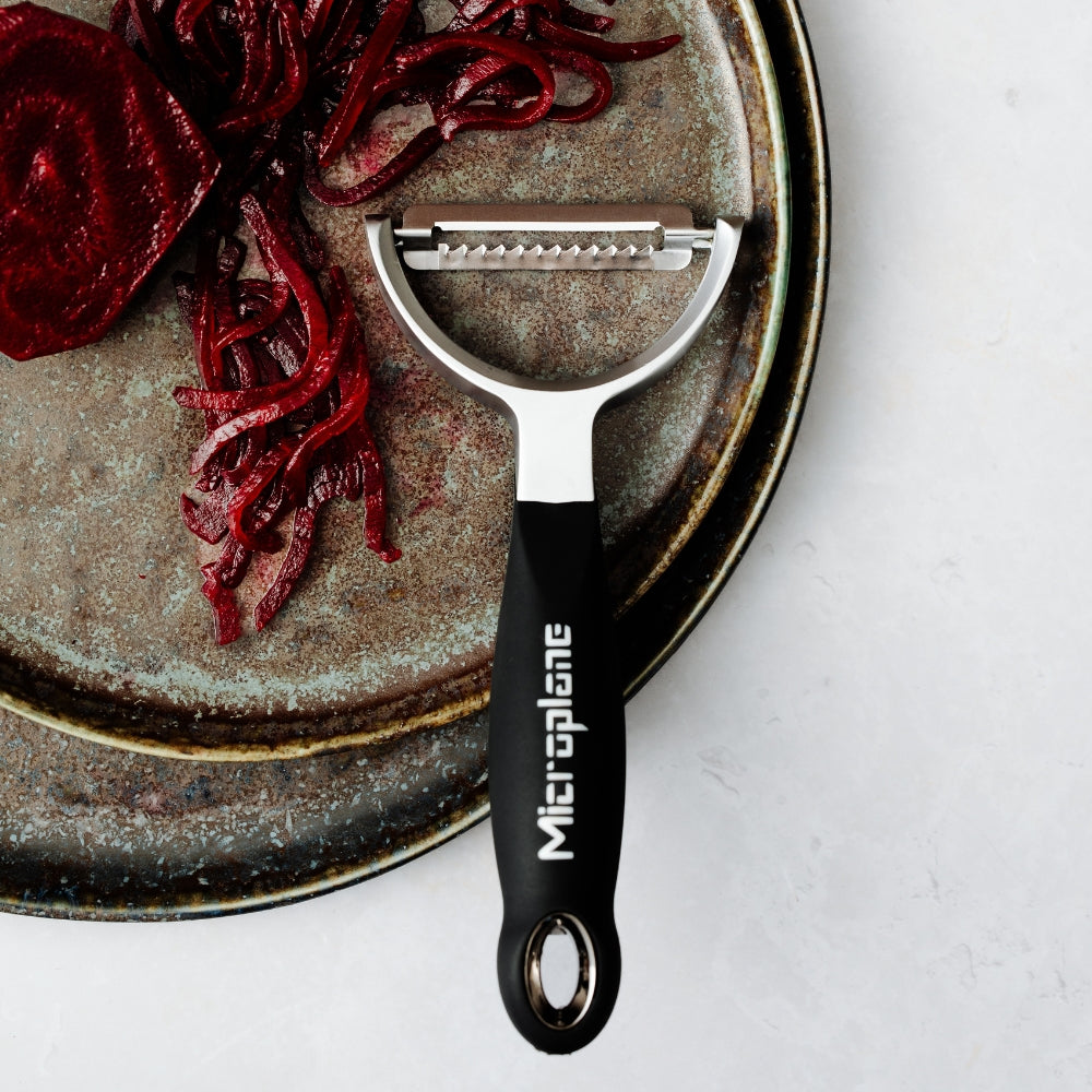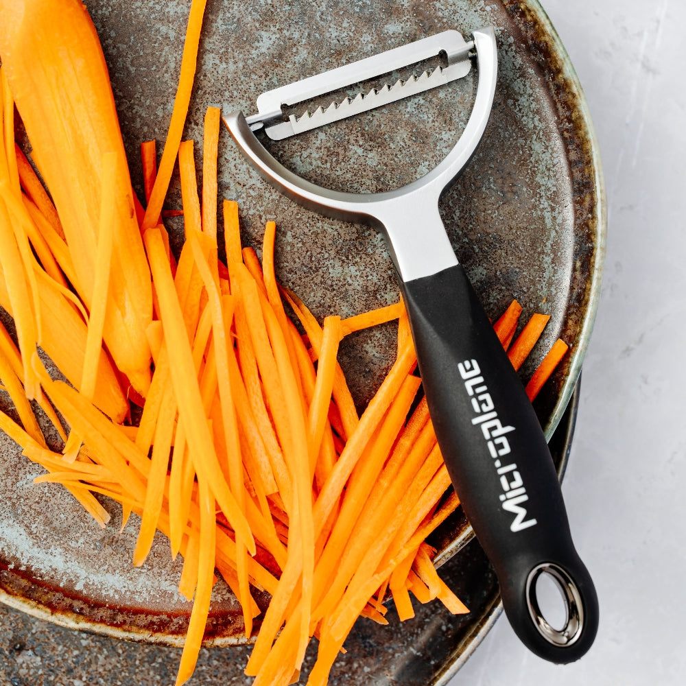 Microplane Professional -juliennekuorijalla valmistat ohuita tikkuja vihanneksista keittoihin, wokkeihin ja salaatteihin. Ergonominen kahva ja terävä terä.