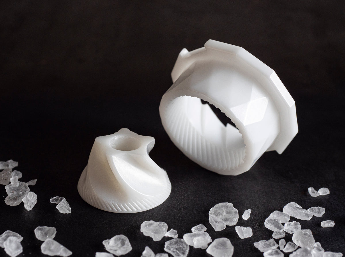 - Täytä suolamyllyt ruuvaamalla nuppi auki ja poistamalla korkki. Täytön jälkeen laita korkki takaisin paikalleen ja ruuvaa nuppi kiinni.