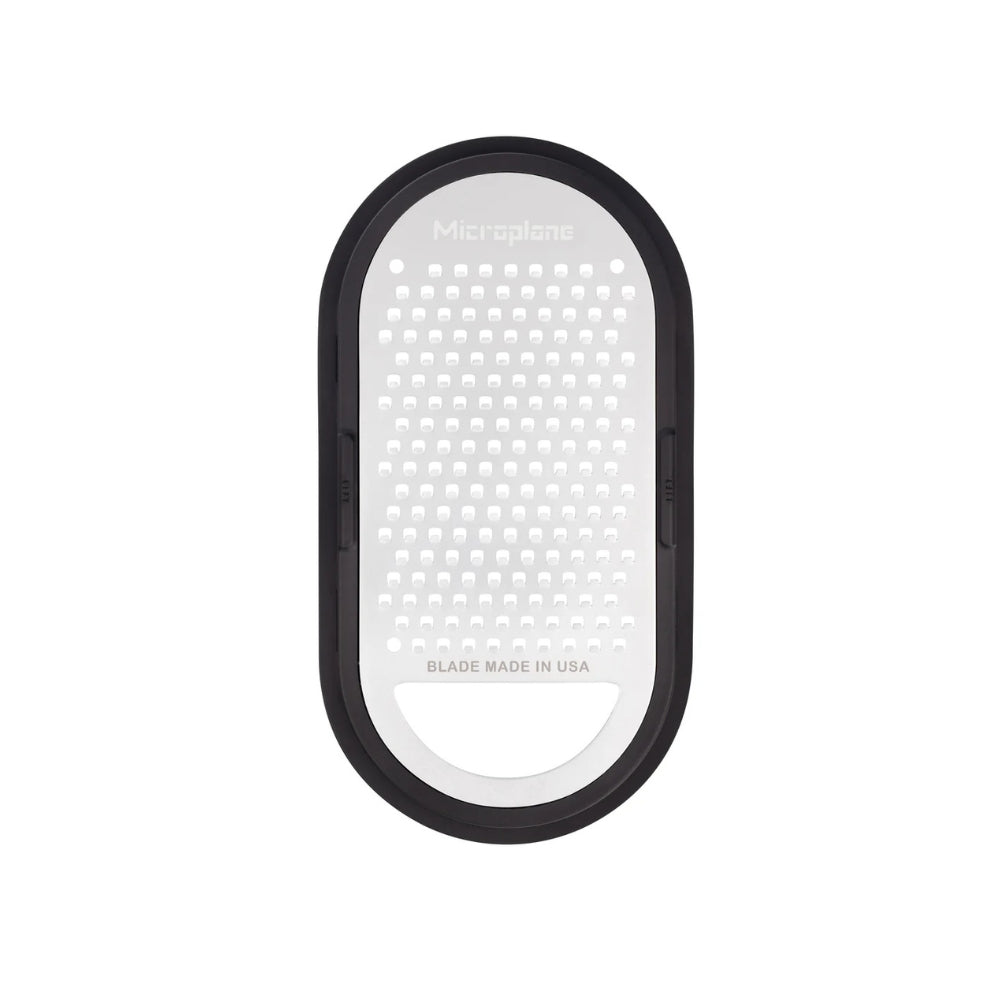 Tässä Microplane-raastimessa yhdistyy raastaminen ja säilytys. Raasta suoraan säilytyslaatikkoon! Soveltuu erinomaisesti esimerkiksi koville juustoille, suklaalle, pähkinöille, koville mausteille ja porkkanalle.