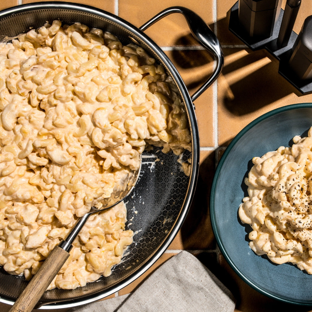 HexClad-paistokasari on tarpeeksi tilava suurempienkin haudutusten valmistamiseen.
