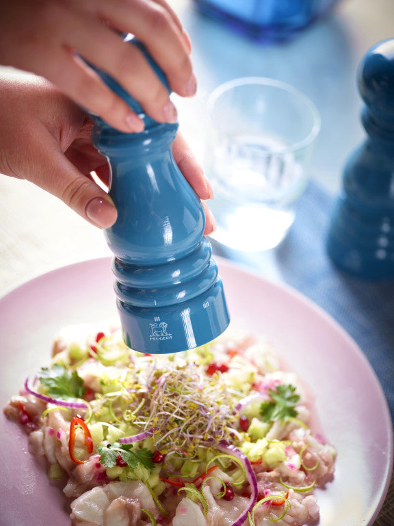 Tyylikäs ParisRama -sarjan kiiltävän sininen Peugeot Paris u'Select -pippurimylly koristaa keittiötä ja tekee vaikutuksen laadullaan vaativampaankin kokkiin!