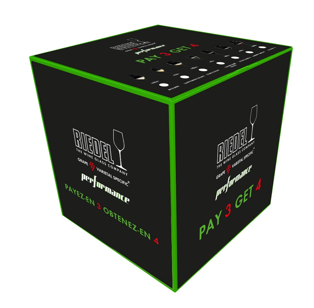 Riedel Performance Cabernet -punaviinilasi 3 + 1 Bonuspakkaus sisältää yhteensä neljä Performance Cabernet -punaviinilasia. Bonuspakkauksen ostajana maksat vain kolmesta ja saat neljännen kaupan päälle!