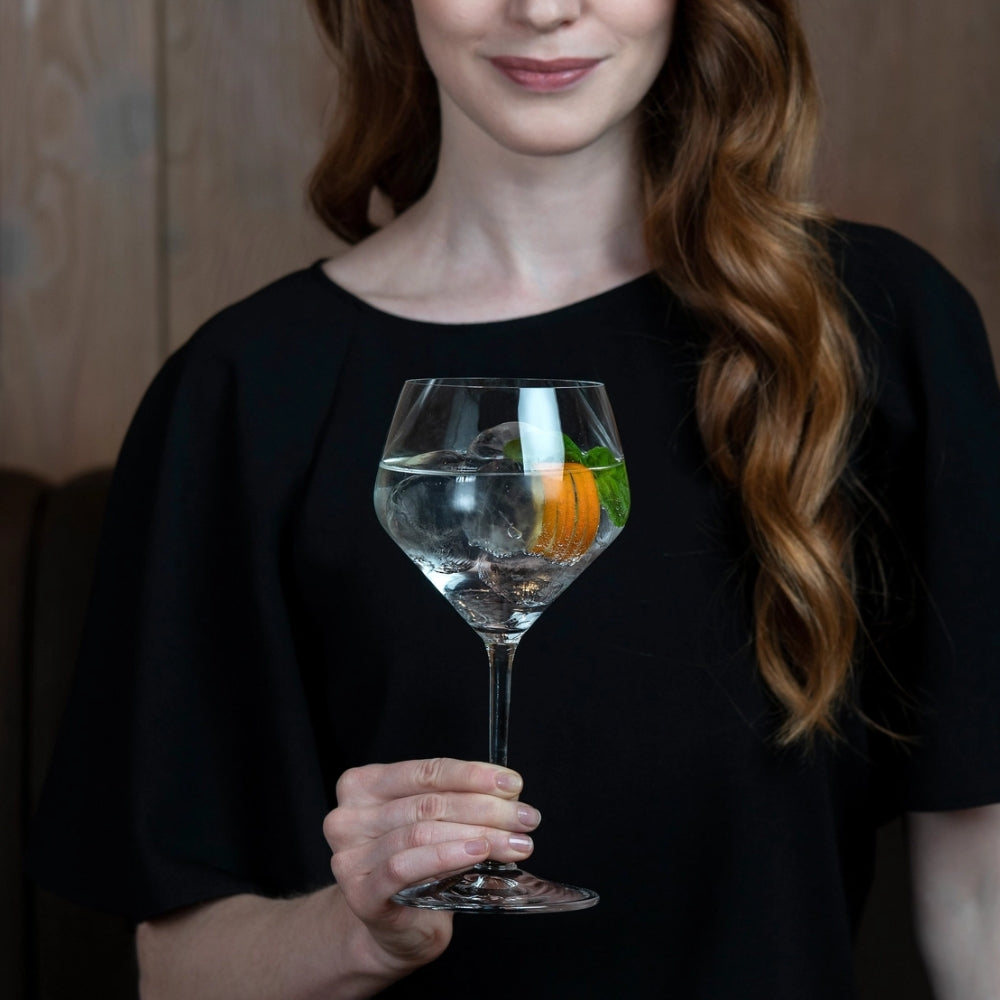 Tilaviin ginilaseihin mahtuu hyvin suuretkin jääpalat. Näyttävä malja on vahvistettua lasia ja se tekee laseista kestävät. Suuremman maljan ansiosta alkoholi ei liikaa hyökkää ja juoma on tasapainossa.