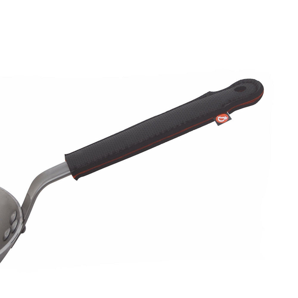 Neopreeninen De Buyer -kahvasuoja paistipannuille. Kahvasuoja on näppärä väline ja pitää sormet turvassa kuumalta kahvalta. Materiaali on miellyttävän pehmeä ja kiva pitää kädessä.