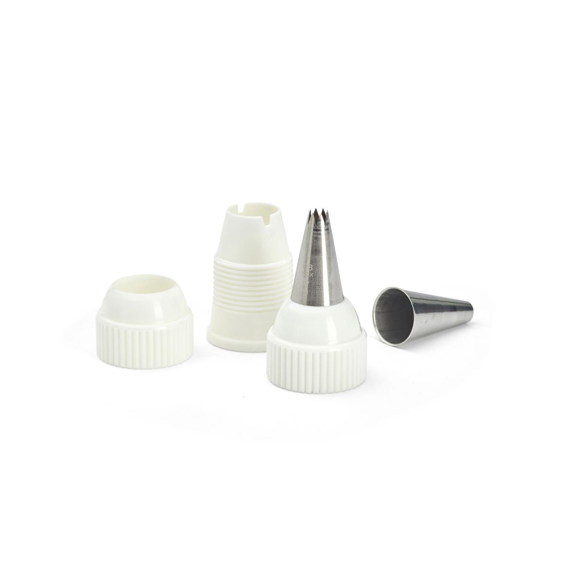 De Buyer tylla-adapteri mahdollistaa tyllan vaihtamisen saman pursotinpussin kanssa.