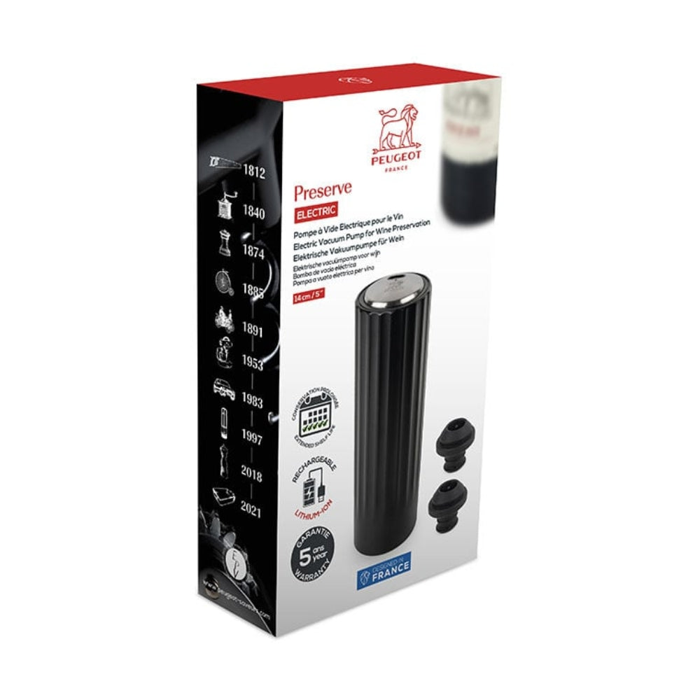 Elektroninen Peugeot Preserve -viinipumppu on helpoin ja nopein tapa saada avattu viini säilymään pidempään.