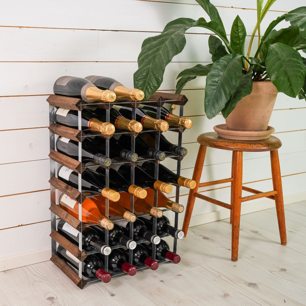 Tähän viinipullotelineeseen mahtuu 30 viinipulloa turvallisesti. Teline on pakattu mahdollisimman pieneen pakkaukseen ja se on helppo kasata. Tarvittaessa yhdistely isompaan kokonaisuuteen on myös helppoa yhdistämisosien avulla. Pullotelineen avulla säilytät viinit tyylikkäästi kotonasi. Nämä viinipullotelineet ovat käytössä myös monissa ravintoloissa.