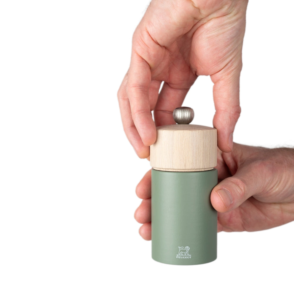 Tyylikkään sarjan myllyt tuovat keittiöön kauniit värit yhdistettynä luonnolliseen puuhun. Pippurimyllyn pinta on puuta ja sisältä löytyy laadukas Peugeot-myllyjen teräskoneisto. Myllyn nupista voi säätää pippurin haluttuun karkeuteen. Näppärän kokoinen pieni maustemylly!