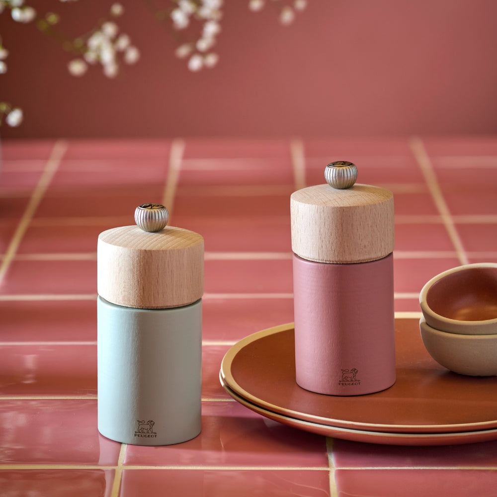 Tyylikkään sarjan myllyt tuovat keittiöön kauniit värit yhdistettynä luonnolliseen puuhun. Pippurimyllyn pinta on puuta ja sisältä löytyy laadukas Peugeot-myllyjen teräskoneisto. Myllyn nupista voi säätää pippurin haluttuun karkeuteen. Näppärän kokoinen pieni maustemylly!