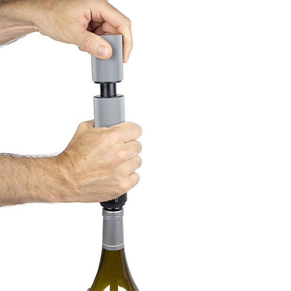 - Valitse pumpusta haluttu asetus (viinipullo/samppanjapullo) ja pumppaa kunnes pumppaaminen käy liian raskaaksi, tällöin pullo on valmis säilytykseen.