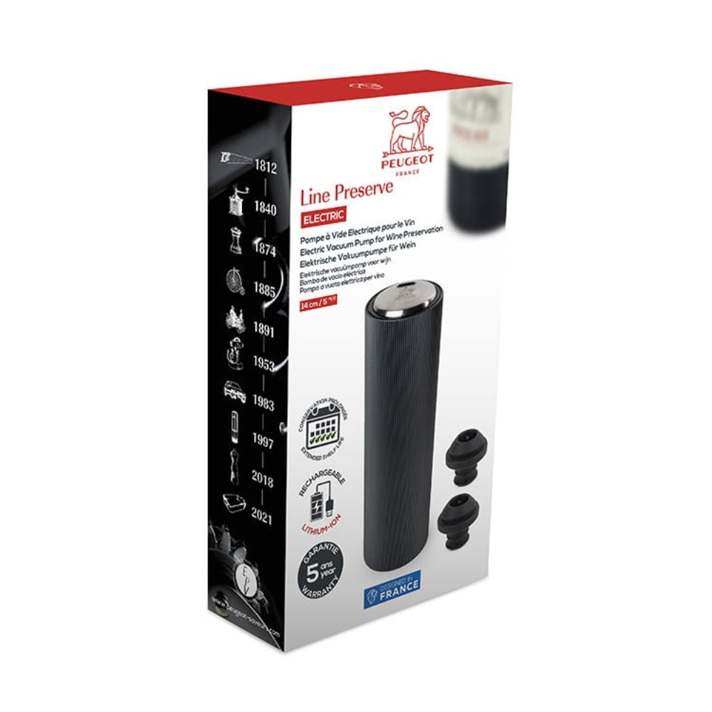 Tyylikäs Peugeot Line -sarjasta tuttu ulkonäkö ihastuttaa. Vakuumipumppu on helppokäyttöinen. Pumppu imee pullosta ilman, jolloin viini säilyy hyvänä jopa viikon. Näin ollen voit nauttia vain yhden lasillisen, eikä koko viinipullo mene hukkaan. Ergonominen ja tyylikäs muotoilu.