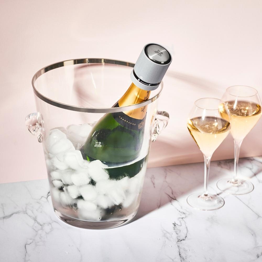 Tyylikäs sulkija on ilmatiivis ja säilöö siksi aromit ja kuplat muutamien päivien ajan pidempään. Eilisen samppanja maistuu hyvältä vielä aamun brunssillakin.