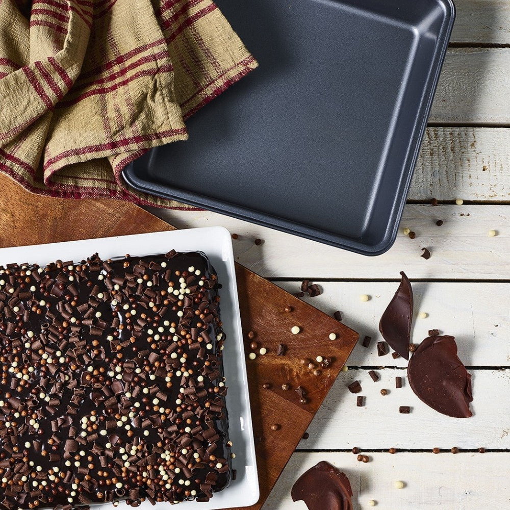 De Buyer neliövuoka sopii loistavasti niin piiraille kuin kakuillekin. Vuoassa on taitetut reunat ja terävät kulmat.