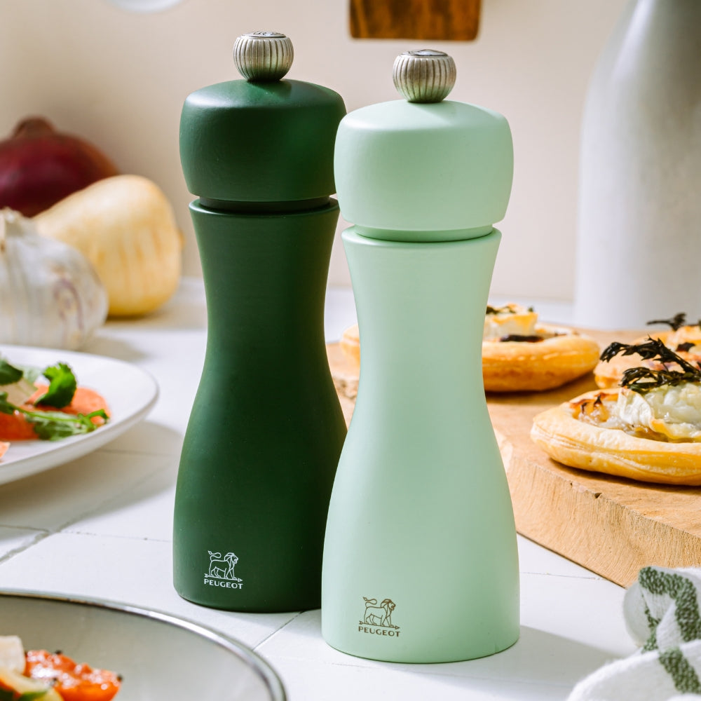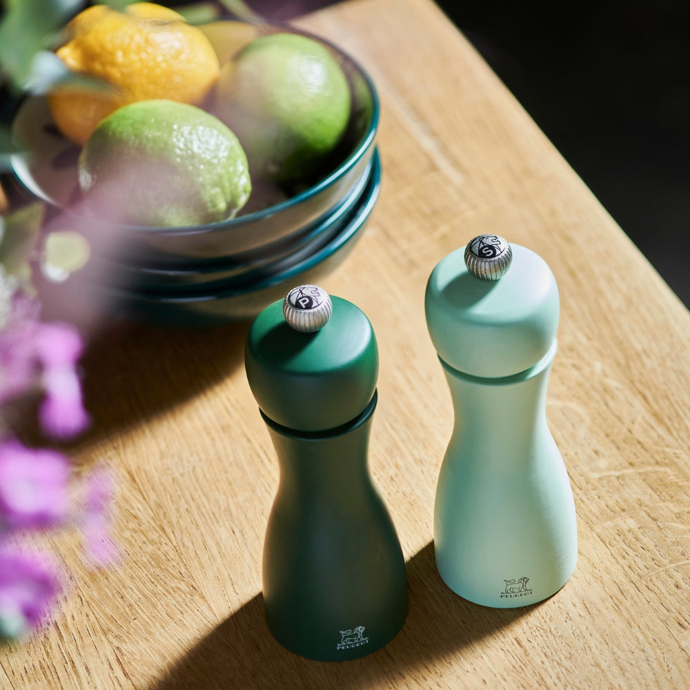 Peugeot Tahiti värikkäät myllyt ovat laadukkaat ja kestävät. Puusta ja ruostumattomasta teräksestä valmistetut myllyt ihastuttavat niin käytössä kuin ruokapöydälläkin. Myllyissä on mattainen pintakäsittely ja myllyjen yläosassa olevasta nupista voi helposti säätää haluttua maustekarkeutta.