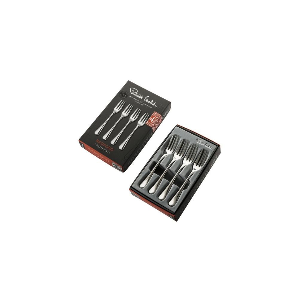 Robert Welchin tyylikäs, neljän kakkuhaarukan setti ajattomasta Radford Bright -aterinsarjasta. Haarukat on valmistettu korkealaatuisesta 18/10-ruostumattomasta teräksestä ja viimeistelty kauniilla peilikiillolla. Radford Bright tuo klassisen muotoilunsa ja monikäyttöisyytensä ansiosta eleganssia mihin tahansa kattaukseen.