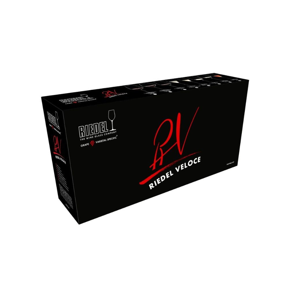 Riedel Veloce -sarja on vaikuttava Riedel-uutusslasisto. Lasien keveys on poikkeuksellinen ja lasien valmistuksessa on käytetty täysin uudenlaista konepuhallusteknologiaa. Sarjan lasit tuntuvat käsintehdyiltä, mutta ovat teknologian vuoksi täysin virheettömiä. Veloce-laseissa on näyttävä timantinmuotoinen malja ja 10 cm levyinen jalka. Tämä tekee laseista erittäin tasapainoisia. Sarjan rypälekohtaisesti suunnitellut lasit ovat täydellisiä erityisesti uuden maailman viineille.